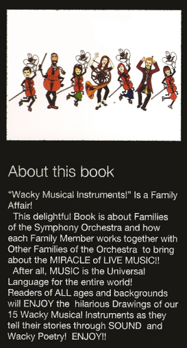 Brand NEW HARDBACK and PAPERBACK Book, Featuring Original ARTWORK of “Wacky Musical Instruments” and Silly POETRY - telling the STORIES of 15 Musical Characters!