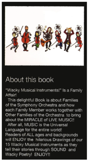 Brand NEW HARDBACK and PAPERBACK Book, Featuring Original ARTWORK of “Wacky Musical Instruments” and Silly POETRY - telling the STORIES of 15 Musical Characters!